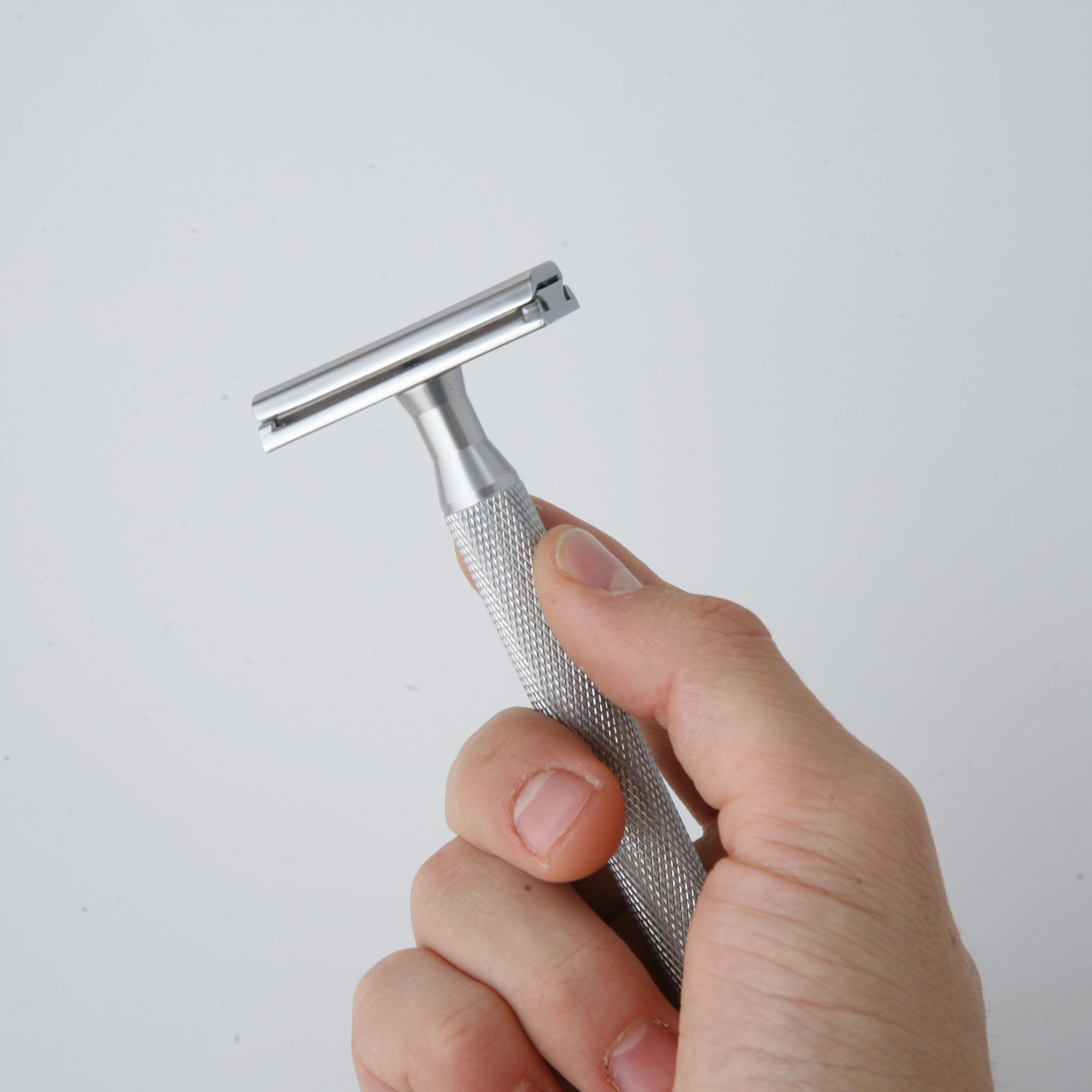 The yiori razor was designed for people who have never used a safety razor before. While classic models require real technique, this one is as intuitive as a disposable razor. Its anti-cut design allows for immediate use, with no learning curve.